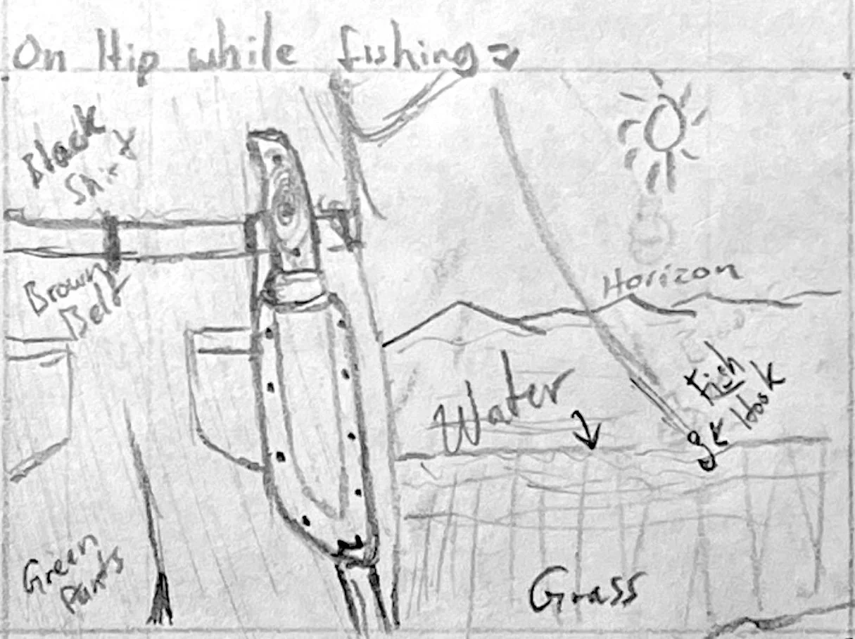 This third scene brought us out of the studio and into nature where these knives are designed to be. Now, I have to admit, I don’t know a whole lot about being an outdoorsman, but I do know a little about fishing, so that’s where I decided to focus this story. I wanted the viewer to imagine themselves tagging along with this man, perhaps as his son or daughter. Fishing adventures were a staple of my childhood, and I hope this low perspective puts the viewer in the shoes of a young adventurer, learning from their dad.