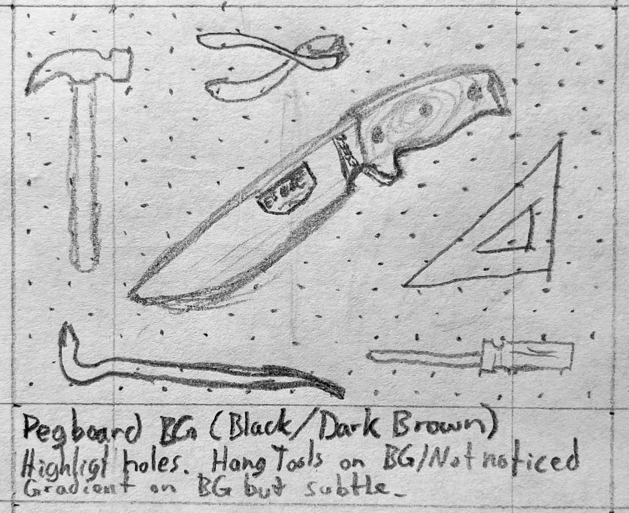 The concept behind this first image was to show the knife as brand new, untouched, but establish right off the bat that this is a tool. So of course, I included a set of tools on a pegboard.